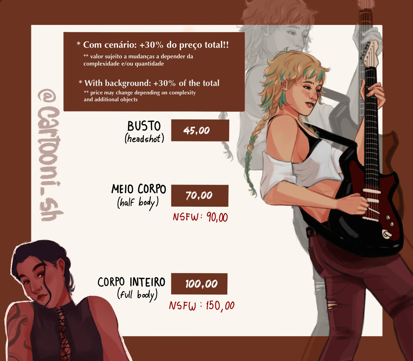 ‼️ Valores referentes a ilustrações para CAPA DE LIVRO são diferentes da tabela acima! Para esses casos me chamar diretamente pelo instagram ou email!